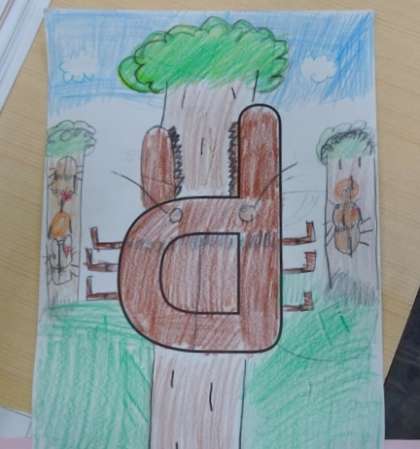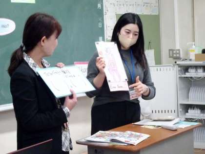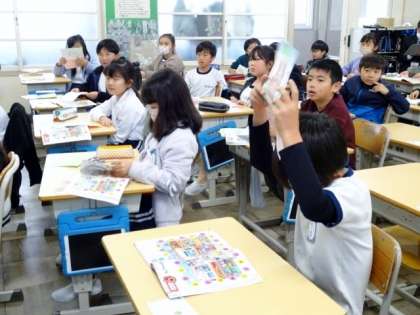 12月15日に、3年2組で外国語活動「アルファベットとなかよし」の研究授業がありました。名前のイニシャルに使う大文字を学んだり、アルファベットを使って絵画展を開いたりしました。楽しみながら、英語にふれるように工夫しています。