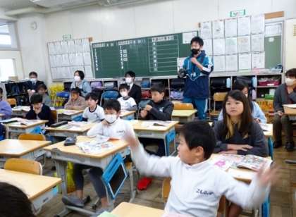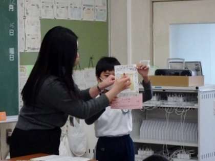 ABCの歌に合わせて、自分のイニシャルが出てきたら、手や絵を挙げる活動も楽しく取り組んでいました。