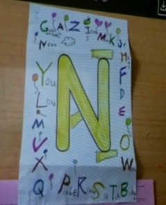 アルファベット絵画展は、アルファベットから思い浮かんだ絵を一人ずつ作りました。