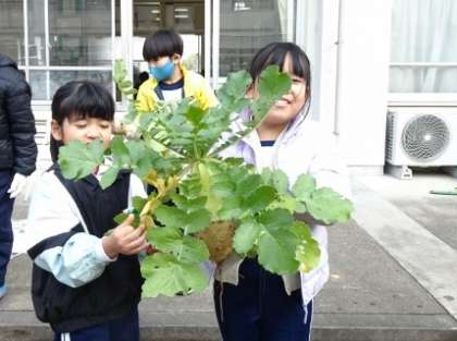 自分たちで育てた大根です。種から大きくなる様子をしっかり見ることができました。