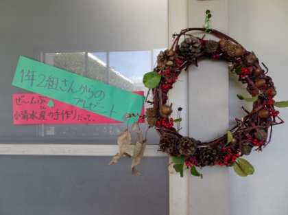 1年2組の子達から、リースをプレゼントしてもらえました。