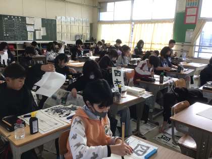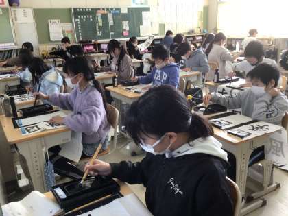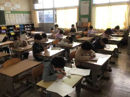 1、2年生は、硬筆(えんぴつ)をがんばりました。