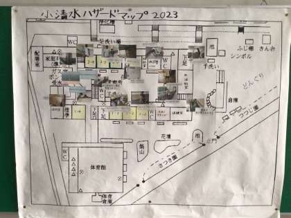また、セキュリティ委員会からは、普段行っている活動の報告がありました。校舎内の危険箇所を示したハザードマップも公開され、子どもたちは、安全に学校生活を送らなければという思いをもちました。