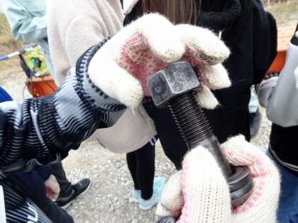 このボルト1つをしめることによって、車200台ぐらいをつるす力があるとのこと。びっくりです。