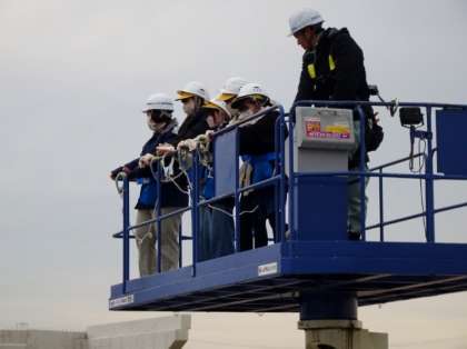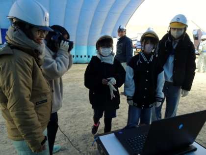 ドローンが使えるようになったことによって、工事の進捗状況がよくわかるようになったそうです。曇り空だったのがちょっと残念でした。