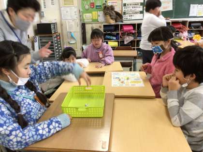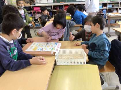 みんなで仲よくすごろく遊びに熱中していました。新年にやりたい遊びの一つですね。サイコロを振って、マスの数分進むだけなのに、わくわく感やどきどき感がいっぱいです。