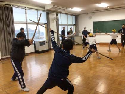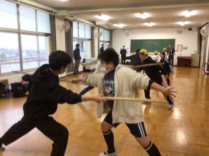 今日は、雨降りだったので、棒の手は部屋で行いました。