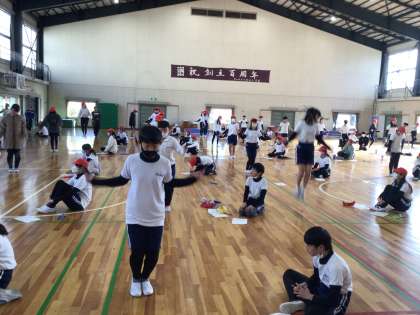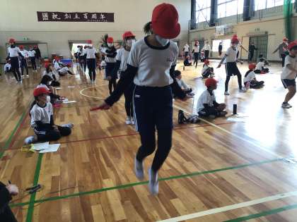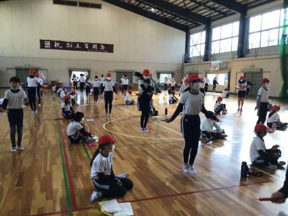 個人技を行った後、大縄跳びを行いました。5年生のときよりもレベルアップした姿が印象的でした。