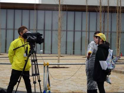取材やインタビューを受ける小清水っ子もいました。