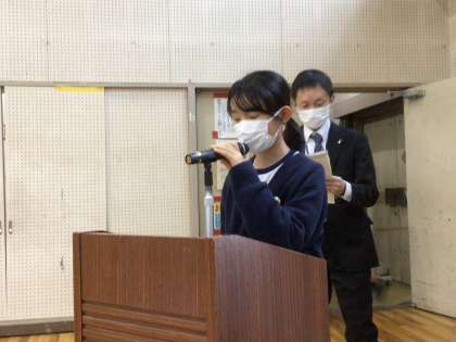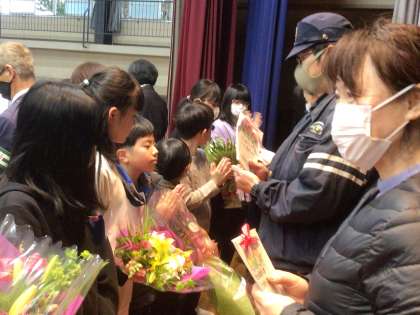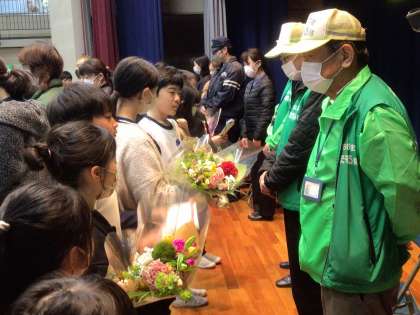 ありがとうの気持ちを込めて、小清水っ子から手紙と花束をお渡ししました。