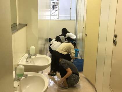 それぞれのトイレに分かれて、懸命に取り組んでいました。