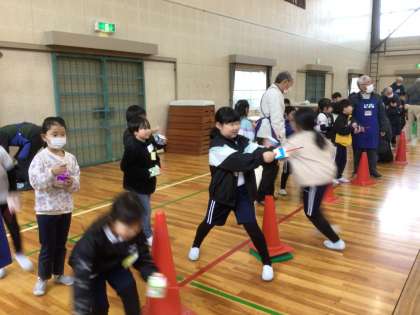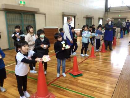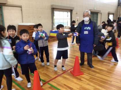 これは、手作りのダーツで的をめがけて当てて、遊んでいる様子です。