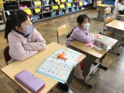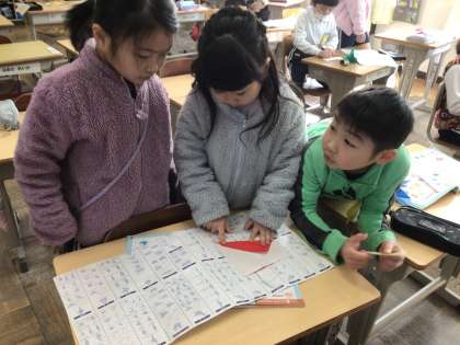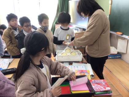 1年生の別のクラスでは、子ども園との交流の準備をしていました。