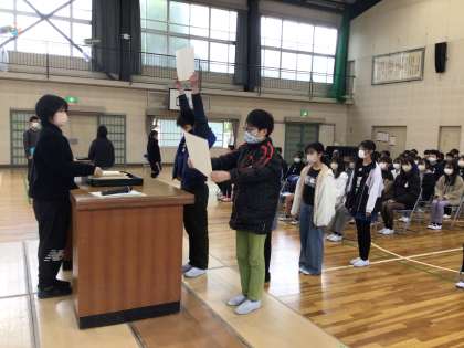 今日は、卒業証書の受け取り方を初めて行いました。礼のタイミングや手の持ち方、受け取ってからの動きを子どもたちは懸命に覚えていました。