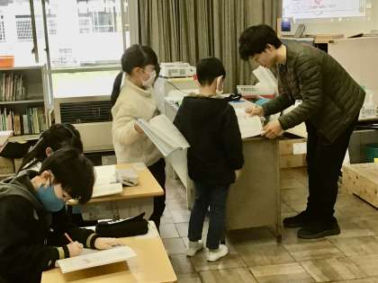 2年生の教室で、算数の時間に、まとめ問題の取り組んでいました。一年間で学んだ単元の問題を自分の力で解いていきます。すらすら解けたところは、自分がきちんと覚えている証拠。引っかかったところは、今確認するチャンスということです。
