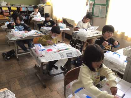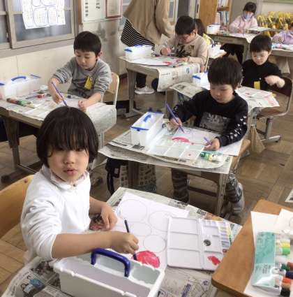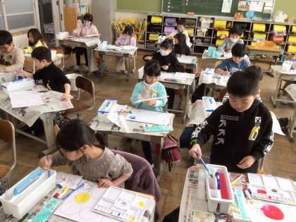 小学校では、初めての絵の具を使った時間でした。