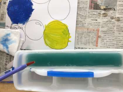色を混ぜるぬり方は、これから始まるのでしょうが、お先に色水で発見できます。