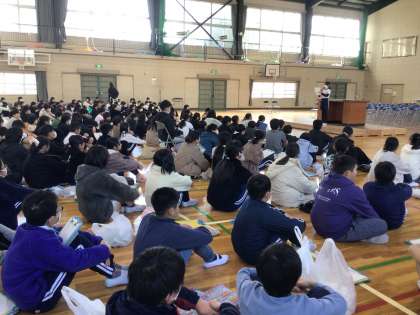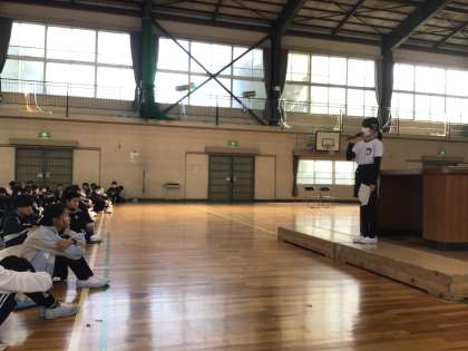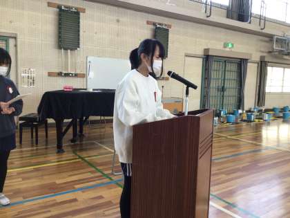 掃除後、各担任のチェックを終えたところから体育館に戻り、「振り返りシート」を書きました。最後の終わりの会では、5年生の代表児童から、「来年自分たちが伝統を引き継ぎ、頑張っていきたい」という決意の言葉を聞くことができました。その言葉を聞いて、6年生は達成感を感じていました。