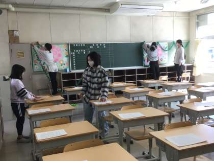 6年生の教室も綺麗に飾ります。