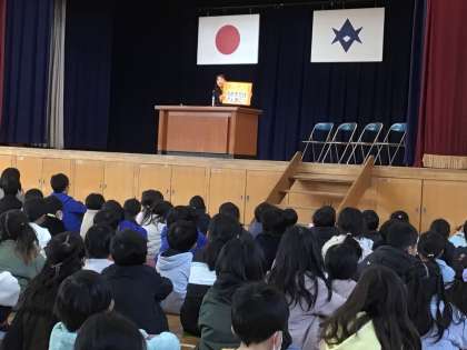 1年の振り返りを1〜5年生の代表児童が行い、立派に発表していました。