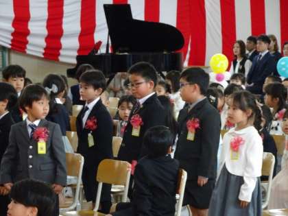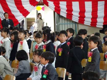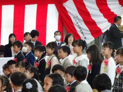 今年度は、2年生と6年生も会場で新1年生をお祝いしました。