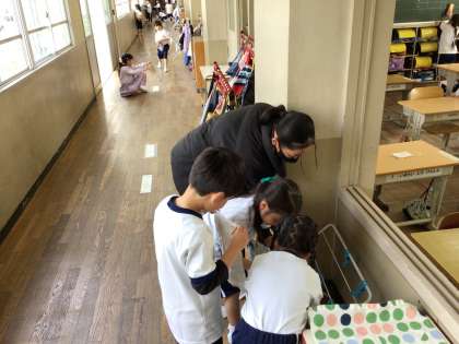 また、1年生は6年生のいうことを聞いて、一生懸命に活動していました。
