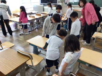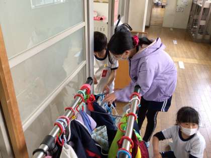 朝のしたくや掃除の時間に1年生のお手伝いを行なっています。