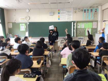6年生で、お題について質問しあい、本人には見えないお題の正解をあてるゲーム?をやって