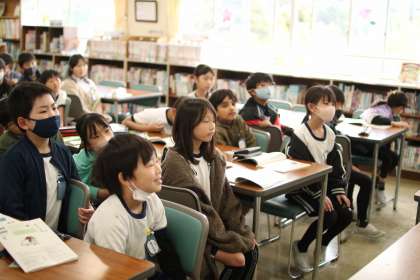 図書館司書の先生から、図書館の使い方や、図書の分類について教えていただきました。後半にはそれぞれの分類から1冊ずつ選び、オリジナルの本棚を作りました。昨年度も使った図書館ですが、新しい分類の本に目を向ける機会となりました。