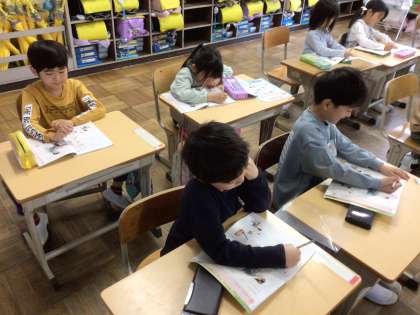 朝の支度が早くなり、ステップタイムの時間に、鉛筆を持って何やらやっているクラスがありました。