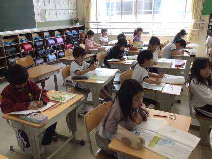 そのあと、教科書の作品を書いた筆者のお話を読み、どんな人や物が出てきたか発表しました。