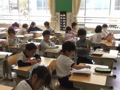 という題を聞いて、どんなお話だと思うか先生が聞くと、とてもおもしろい意見が出てきました。自分で想像できるということはすてきなことです。友達の意見を聞いて、ああそうかもと友達の想像も膨らみますよ。