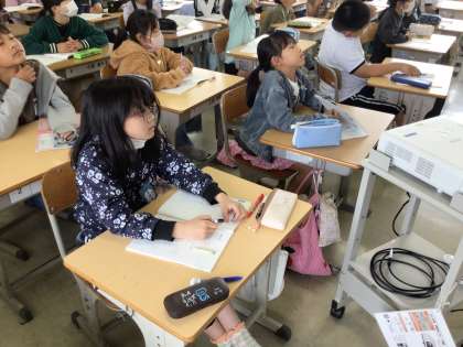 理科は天気と気温の関わりについて勉強しています。天気の違いによって気温が違うのか調べるために、気温の測り方について考えました。正しく測定できるように映像教材を見ていました。