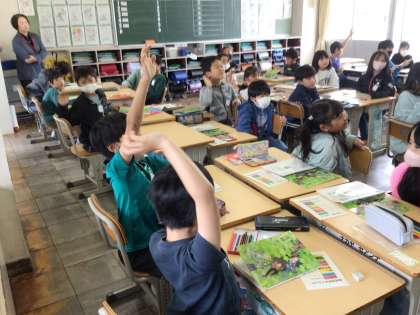 2組が国語の授業で面白そうなことをしていました。先生が音読の中でわざと間違えた箇所を見つけていました。気付いた子が手を挙げながら「ダウト!」と声をあげていました。しっかり読み込んでいることが伝わってきました。