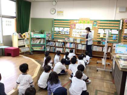 図書館司書の先生から図書室の使い方を教えてもらい、初めて本を借りました。これからたくさんの本を読んでいけるといいですね。また、読書ノートを持ち帰りましたら、ぜひお子さんと一緒に楽しくご活用ください。