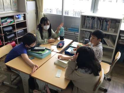 朝の学習ステップタイムでは、「気持ち当てゲーム」を行っています。「はぁ」という2文字でため息なのか、疑問なのか、怒りなのか表現します。多少恥ずかしがる姿が見られますが、友達にちゃんと伝わって喜ぶ姿も見られます。表現力アップに努めていきます。