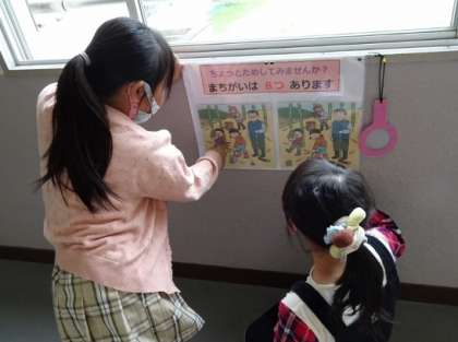 参観の時間が終わった後、「まちがいさがし」に挑戦している小清水っ子がいました。