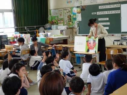 なかよし学級では、絵本の読み聞かせや自己紹介、体を動かすゲームなどを行いました。