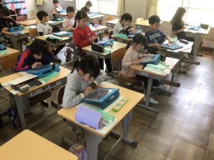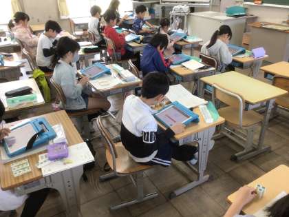 算数の時間にキュビナのかけ算の問題を解きました。