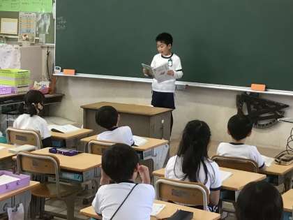 「すいせんのラッパ」の音読発表会をしました。