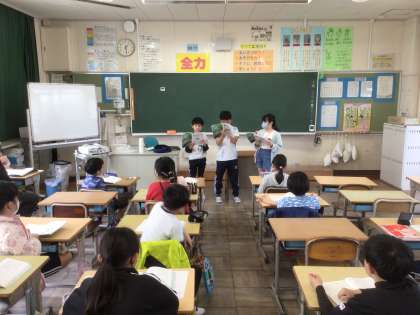 音読発表会の練習をしました。上手に読んでいる人の発表を聞きました。上手だったところを思い出しながら、練習しました。