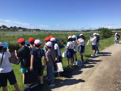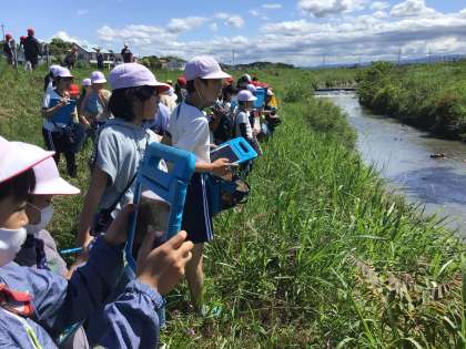 川の周りには草がたくさん生えており、川の近くまで降りられない場所が多かったですが、子どもたちは川の水や周りの様子を一生懸命記録していました。