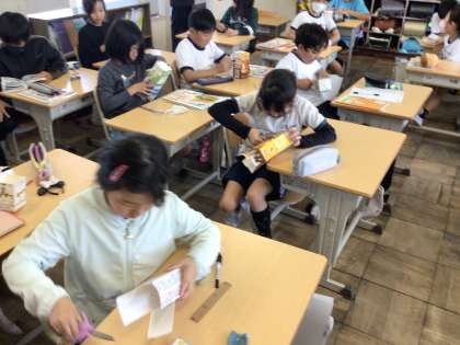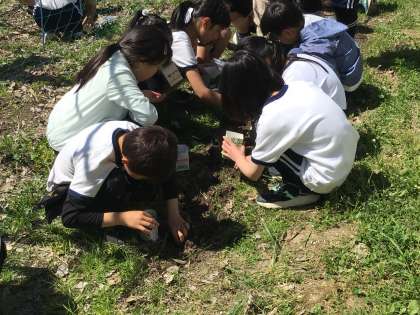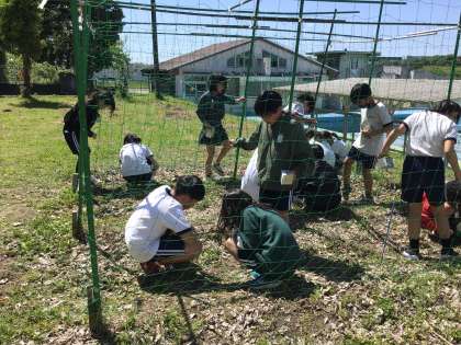 理科で行う植物観察のために、ツルレイシを植える準備をしました。牛乳パックを利用して植えますが、土を入れるのも一苦労、出てくるミミズに一喜一憂しながら活動しました。次回はいよいよ種を植えます。