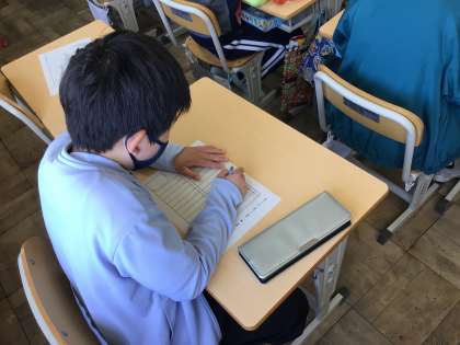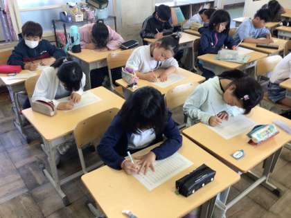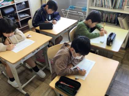 今日は気持ち当てゲームを休憩し、月例テストに向けて漢字練習を行いました。新出漢字として勉強したり、宿題で何度も練習をしたりしていますが、いざテスト形式で確かめると書けない漢字があるものです。学んだ漢字をいつでも書けるように、練習を工夫していきたいです。