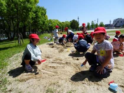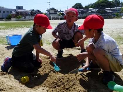 この後、ケーキやお城や基地や川など、想像がいっぱい広がって楽しく活動できたようでした。通りかかると、できたものを教えてくれる1年生の姿がほほえましかったです。