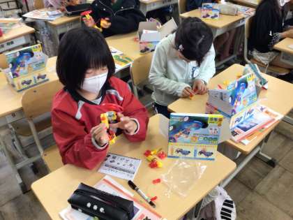 理科の授業で「電池のはたらき」という単元に入りました。キットが配られると、目をキラキラさせていました。まずはモーターにプロペラをつけて回しましたが、風が来る子と来ない子がいて、なんでだろうと学習課題につながりました。ここから、電池のはたらきについて考えていきます。
