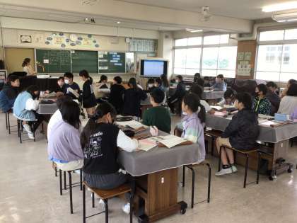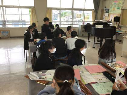 ペガサス、おぼろ月夜の2つの曲の曲想を比べ、感じたことを全体で共有している様子です。感じたことが歌に表れるよう、歌い方に気をつけながら歌っていきます。