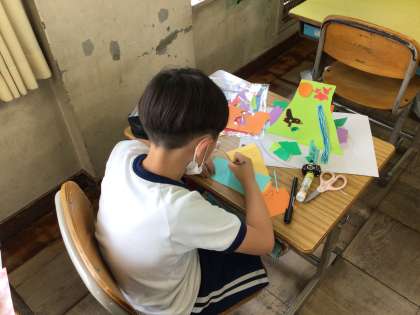 割りピンを使って、くるくる回る部分を工夫しながら、作品を作り上げます。