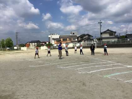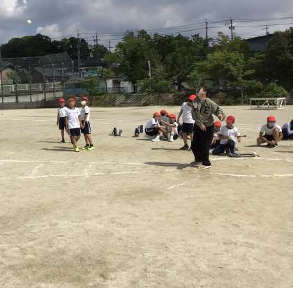 外では5年生が50メートル走とソフトボール投げを行いました。