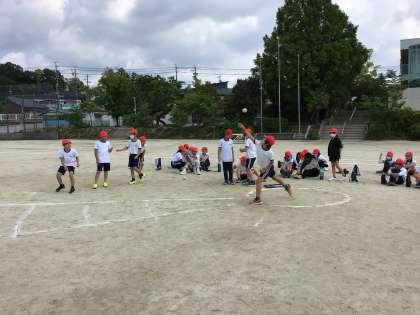 ボール投げでは、拾う子たちもがんばります。